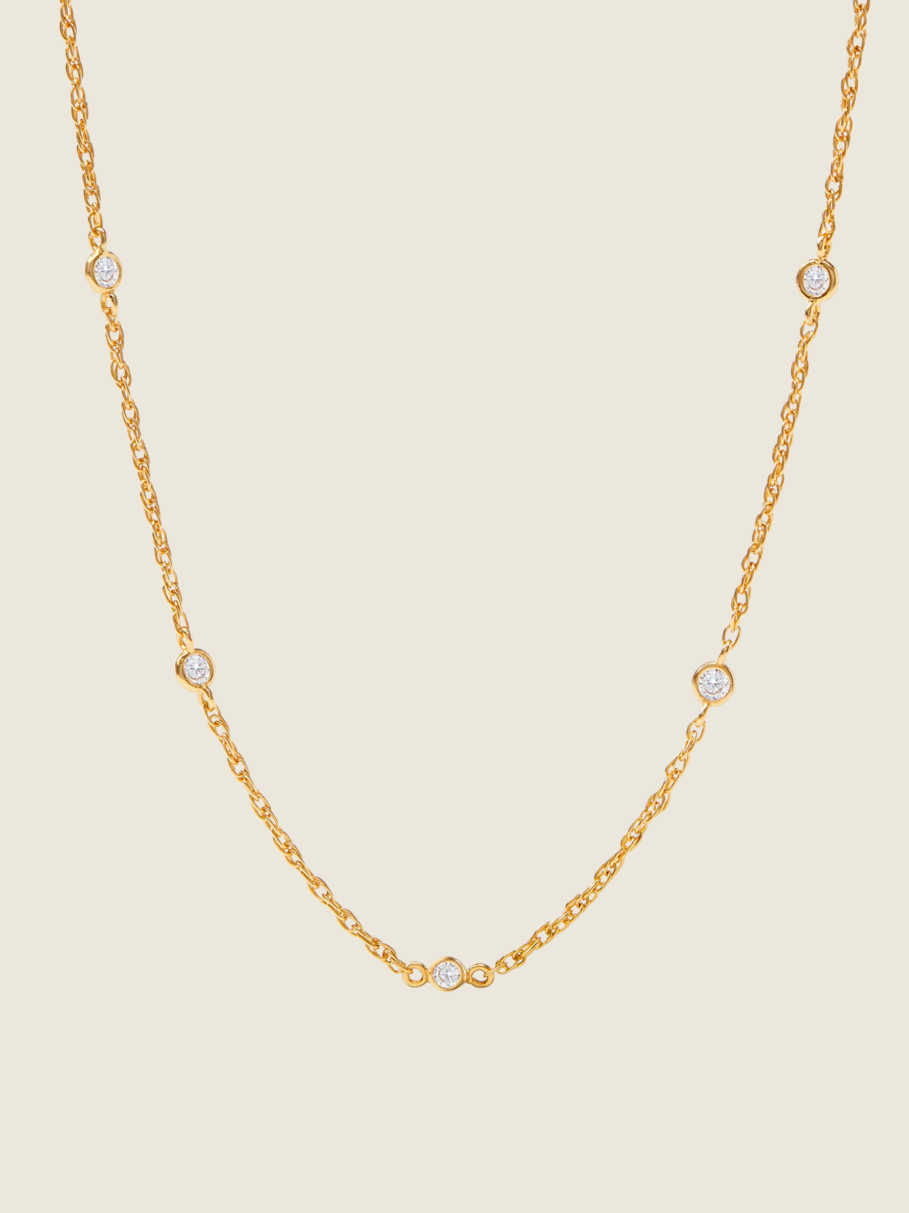 Add an understated touch of elegance to your special occasion wardrobe with the barely-there sparkle and shine of this golden, cubic zirconia-accented necklace.