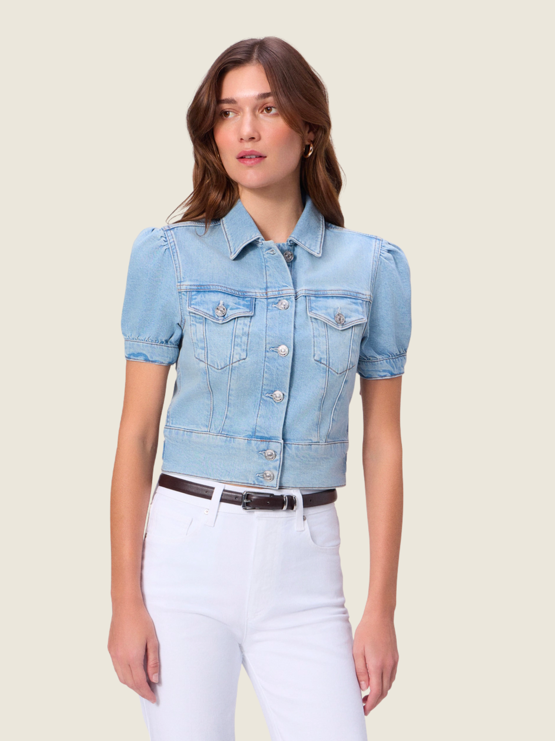 We love the puff sleeves and cropped fit of this versatile light wash denim jacket. With a wider waistband and double chest pockets, Kendra is crafted from heritage-inspired denim with a soft hand-feel and a hint of stretch.